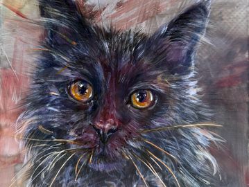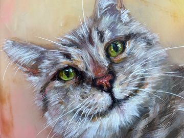Work depicting one to three subjects on 6x6x1.2" canvas. Painting extends around the sides of the canvas, covering an area approx. 64 sq. in. Price includes shipping via USPS within the continental US. FL residents add 7% sales tax.